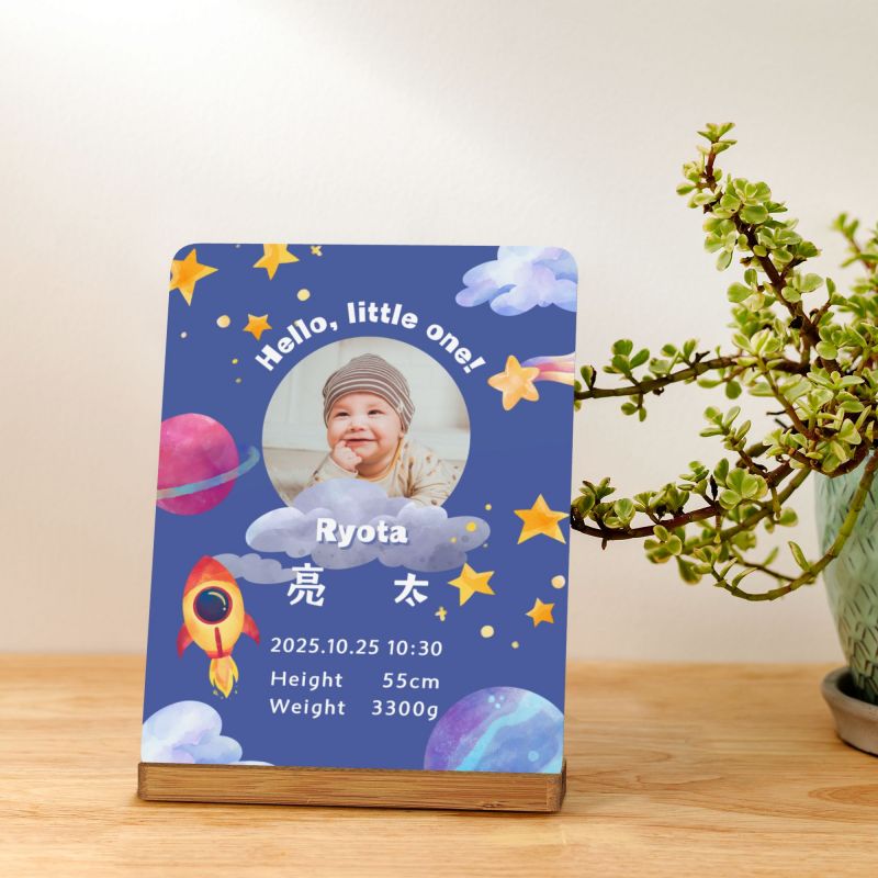 【オーダーメイド】命名書 メタル ネームプレート 写真入り 名入れ オーダー 出産祝い・ベビー記念・ 内祝い | 星 宇宙