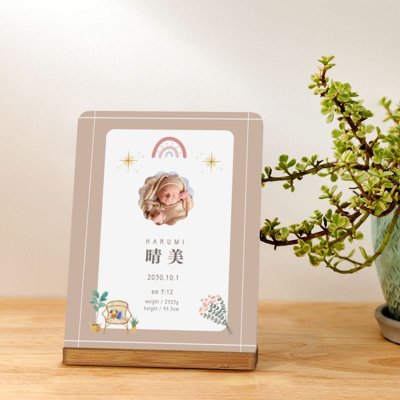 【オーダーメイド】命名書 メタル ネームプレート 写真入り 名入れ オーダー 出産祝い・ベビー記念・ 内祝い | シンプルデザイン 6