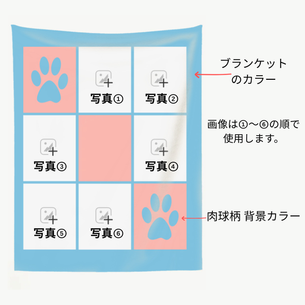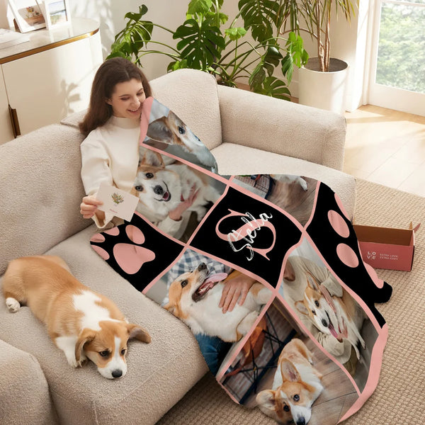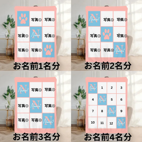 うちの子グッズ ブランケット ペット写真6-12枚 1-4 名前 膝掛け ひざ掛け 愛犬猫 オーダーメイド - Paw Print