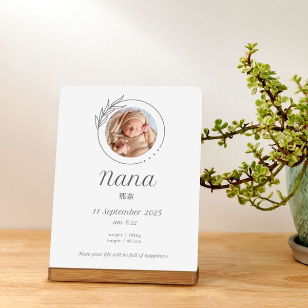 【オーダーメイド】命名書 メタル ネームプレート 写真入り 名入れ オーダー 出産祝い・ベビー記念・ 内祝い | シンプルデザイン 6