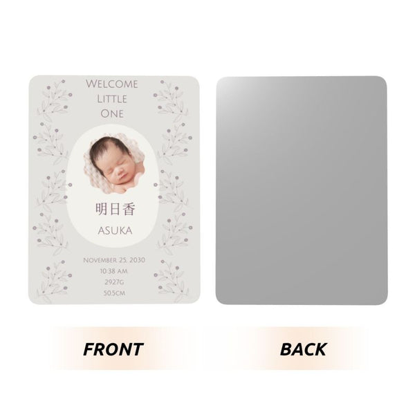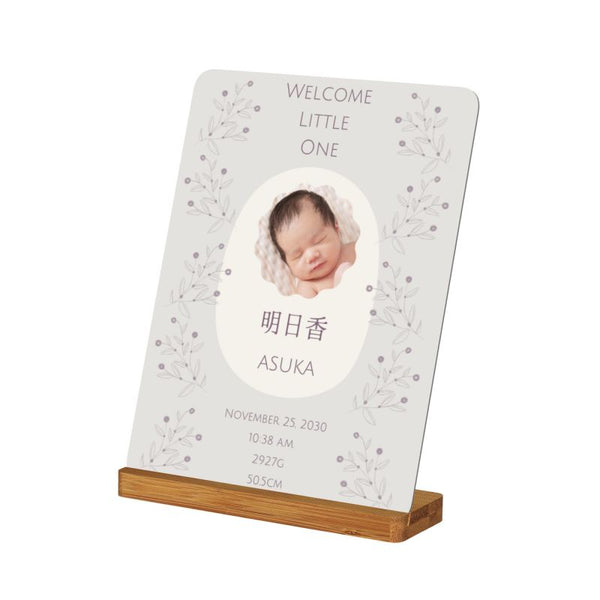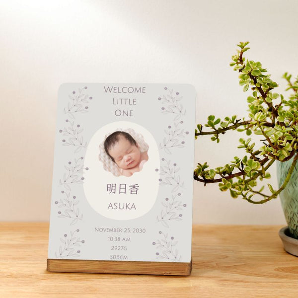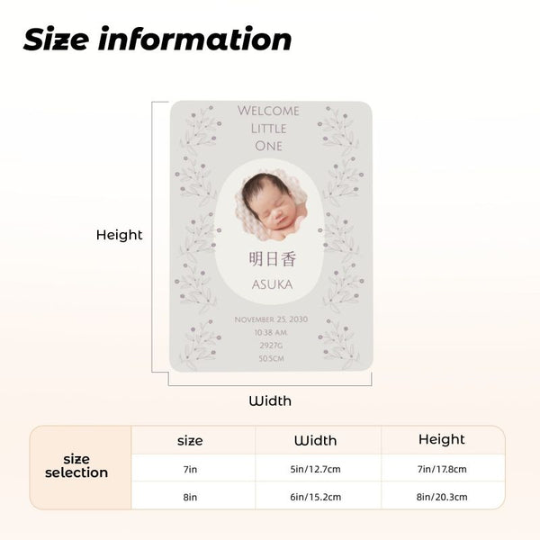 写真のように、お名前・誕生日・出生時の身長体重などをお入れすることができます。