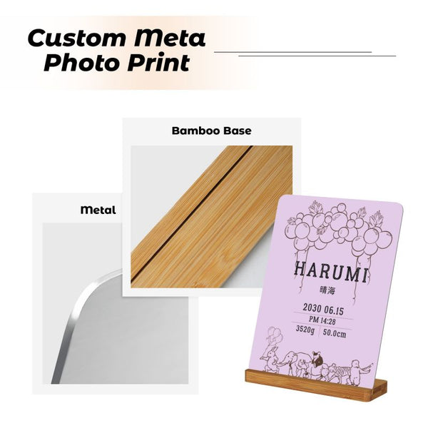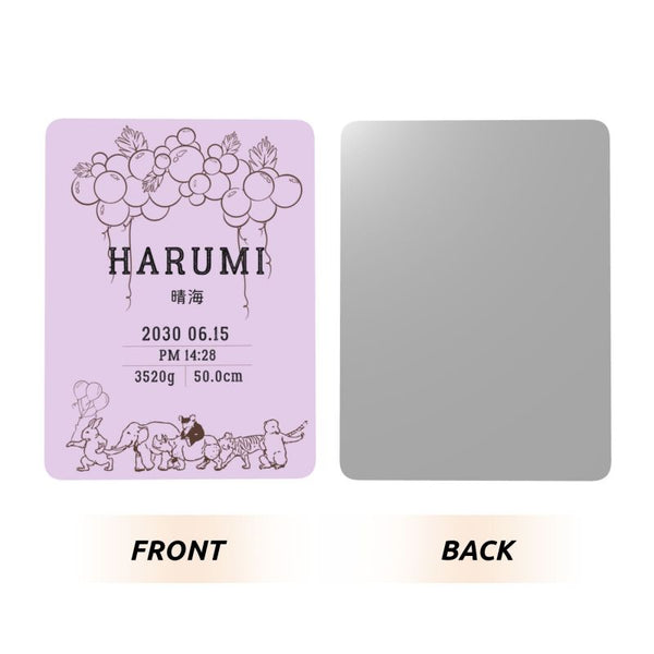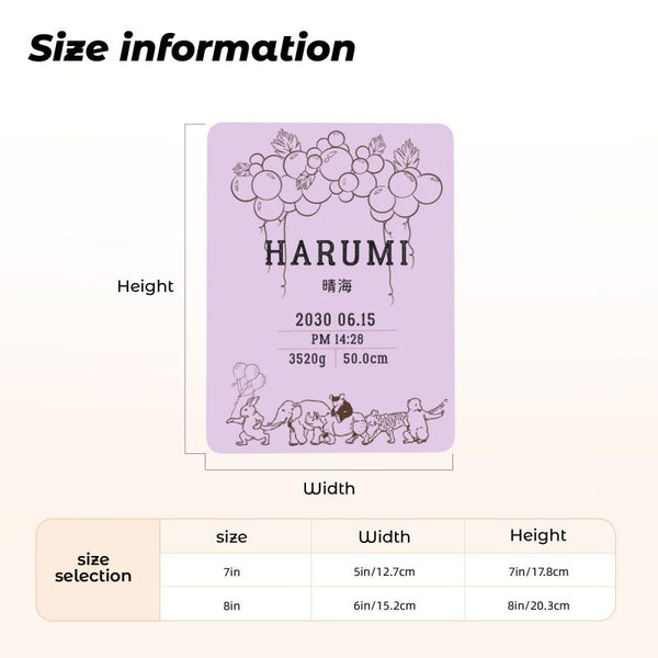 写真のように、お名前・誕生日・出生時の身長体重などをお入れすることができます。