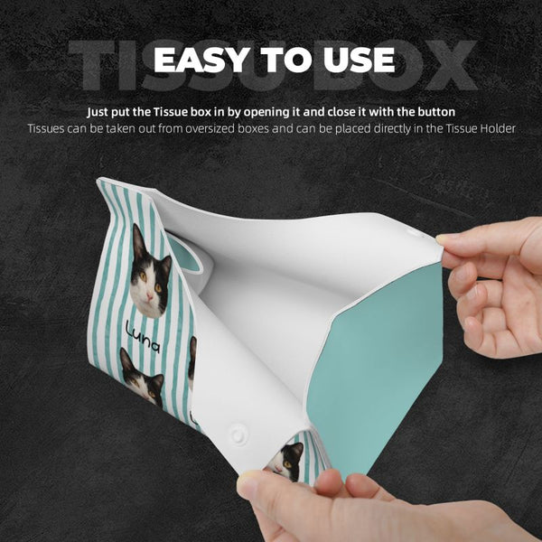 あなただけのオリジナルティッシュケースを作りませんか?ペットや大切な人の写真を使って、レザー風のスタイリッシュなデザインにカスタマイズ可能。インテリアに調和するおしゃれなティッシュケースは、実用性と個性を兼ね備えたアイテムです。リビング、寝室、オフィスなど、どんな場所にもぴったりで、ティッシュを収納しながら、空間を華やかに演出します。