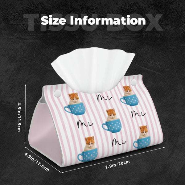 あなただけのオリジナルティッシュケースを作りませんか?ペットや大切な人の写真を使って、レザー風のスタイリッシュなデザインにカスタマイズ可能。インテリアに調和するおしゃれなティッシュケースは、実用性と個性を兼ね備えたアイテムです。リビング、寝室、オフィスなど、どんな場所にもぴったりで、ティッシュを収納しながら、空間を華やかに演出します。