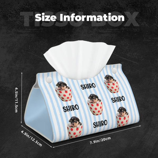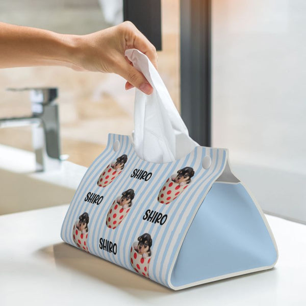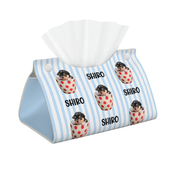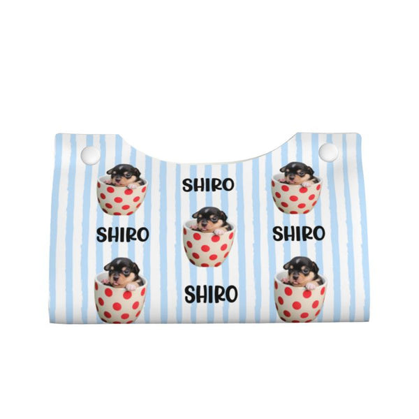 ペット/人物写真でつくるオリジナル レザー風 うちの子ティッシュカバー うちの子オーダー  うちの子グッツ うちの子ギフト- ブルーのストライプ柄