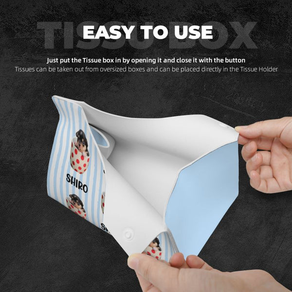ペット/人物写真でつくるオリジナル レザー風 うちの子ティッシュカバー うちの子オーダー うちの子グッツ うちの子ギフト- ブルーのストライプ柄