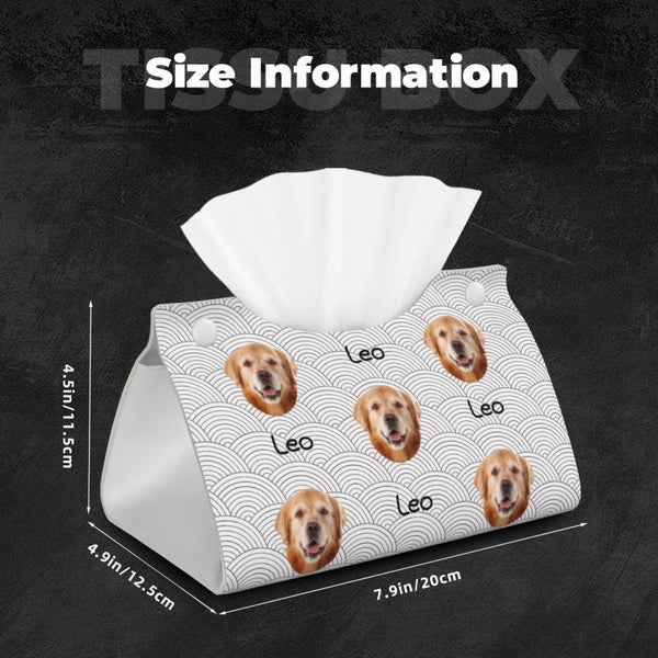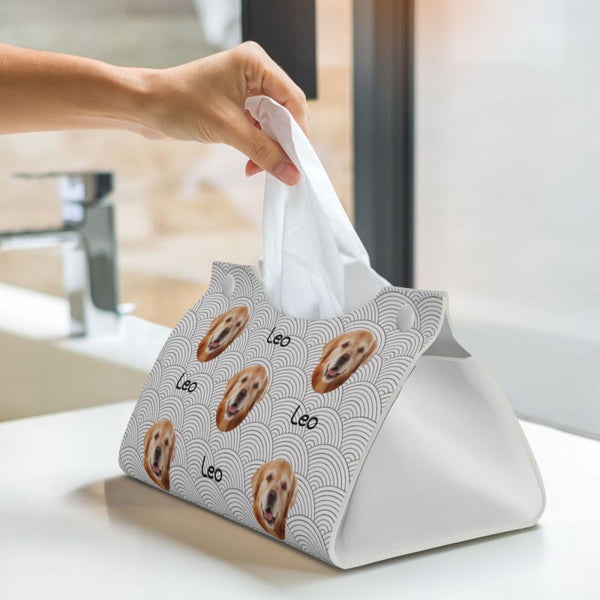 あなただけのオリジナルティッシュケースを作りませんか?ペットや大切な人の写真を使って、レザー風のスタイリッシュなデザインにカスタマイズ可能。インテリアに調和するおしゃれなティッシュケースは、実用性と個性を兼ね備えたアイテムです。リビング、寝室、オフィスなど、どんな場所にもぴったりで、ティッシュを収納しながら、空間を華やかに演出します。
