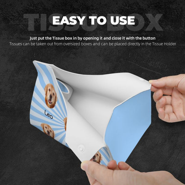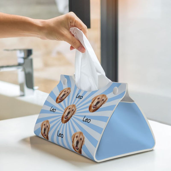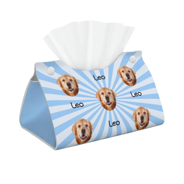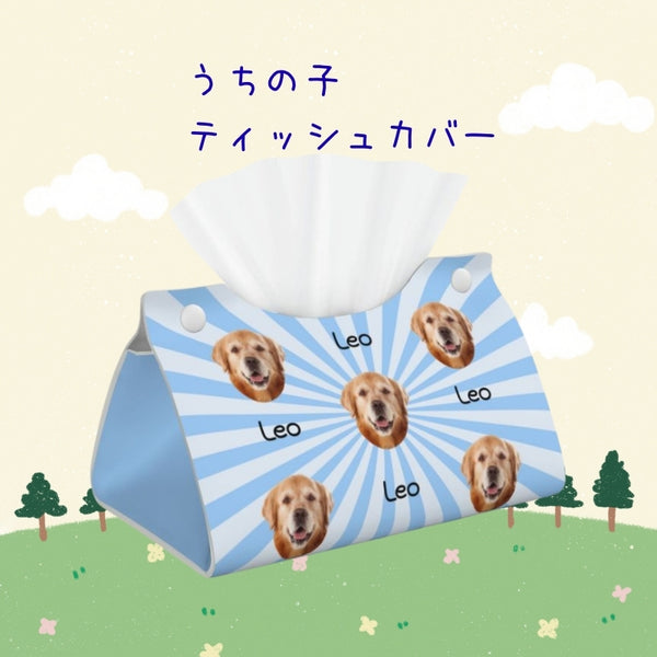 ペット/人物写真でつくるオリジナル レザー風 うちの子ティッシュカバー うちの子オーダー うちの子グッツ うちの子ギフト- RETRO BLUE