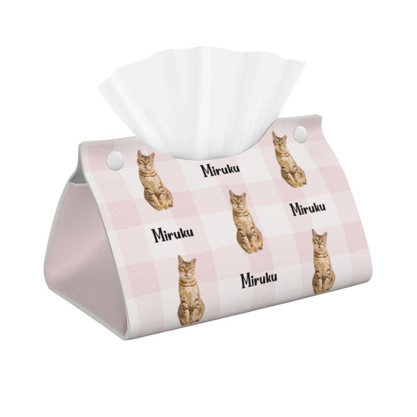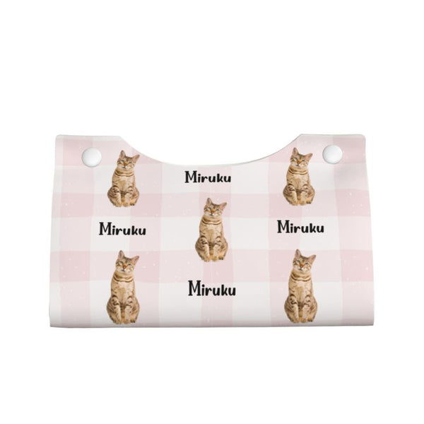 ペット/人物写真でつくるオリジナル レザー風 うちの子ティッシュカバー うちの子オーダー うちの子グッツ うちの子ギフト- ピンクのチェック柄