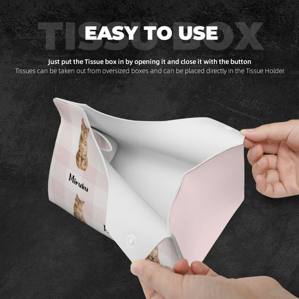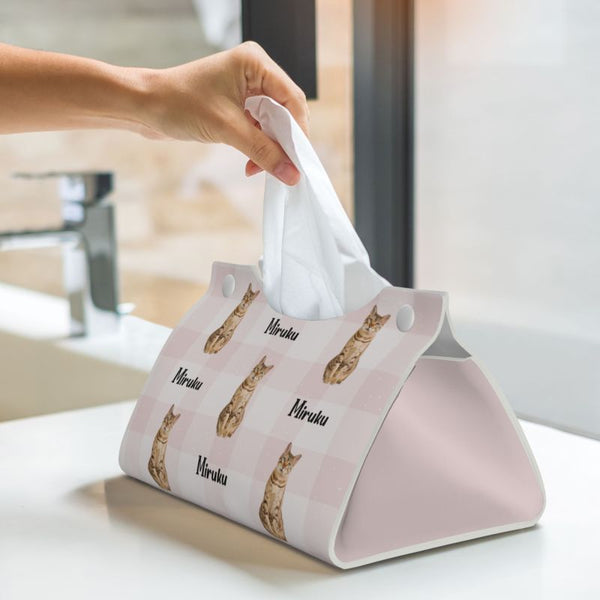 あなただけのオリジナルティッシュケースを作りませんか?ペットや大切な人の写真を使って、レザー風のスタイリッシュなデザインにカスタマイズ可能。インテリアに調和するおしゃれなティッシュケースは、実用性と個性を兼ね備えたアイテムです。リビング、寝室、オフィスなど、どんな場所にもぴったりで、ティッシュを収納しながら、空間を華やかに演出します。