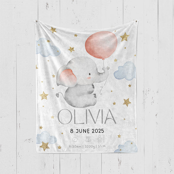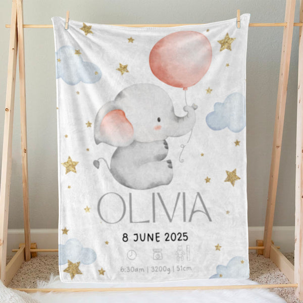 出産祝いに名前入り大判ブランケット 女の子 男の子 赤ちゃん ベイビー★ 最高のギフト★ かわいい象 11/08