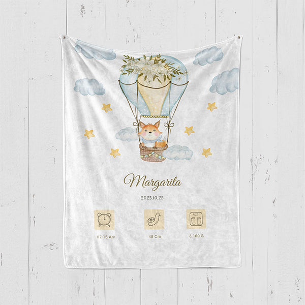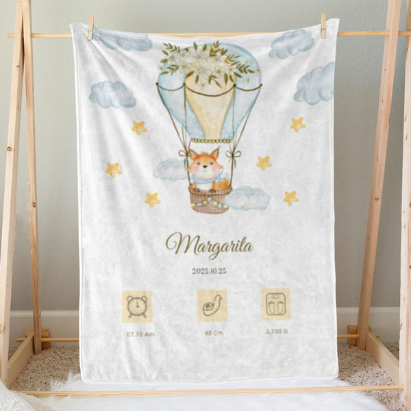 出産祝いに名前入り大判ブランケット 女の子 男の子 赤ちゃん ベイビー★ 最高のギフト★キツネ 11/08