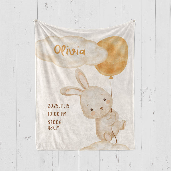 出産祝いに名前入り大判ブランケット 女の子 男の子 赤ちゃん ベイビー★ 最高のギフト★BUNNY ウサギ 11/08