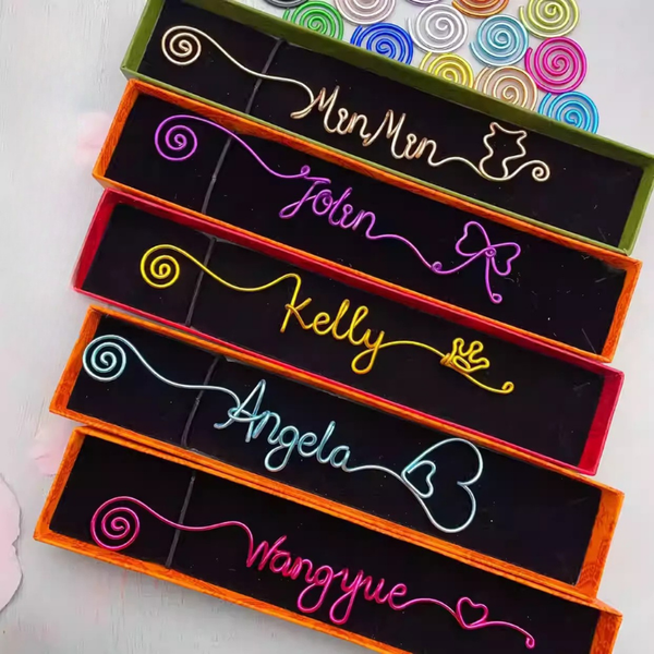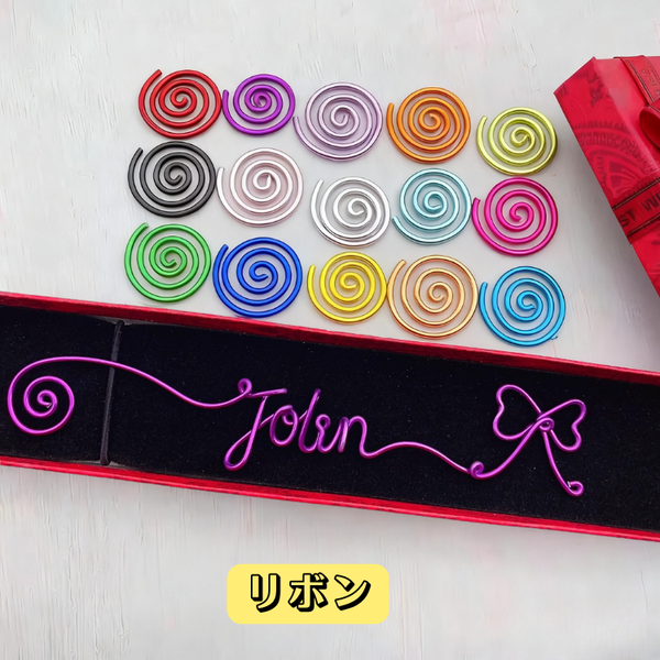 【オーダーメイド】名入れワイヤーブックマーク 全15色 - 無料ギフトボックス