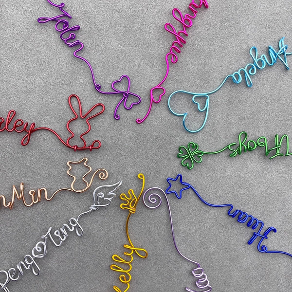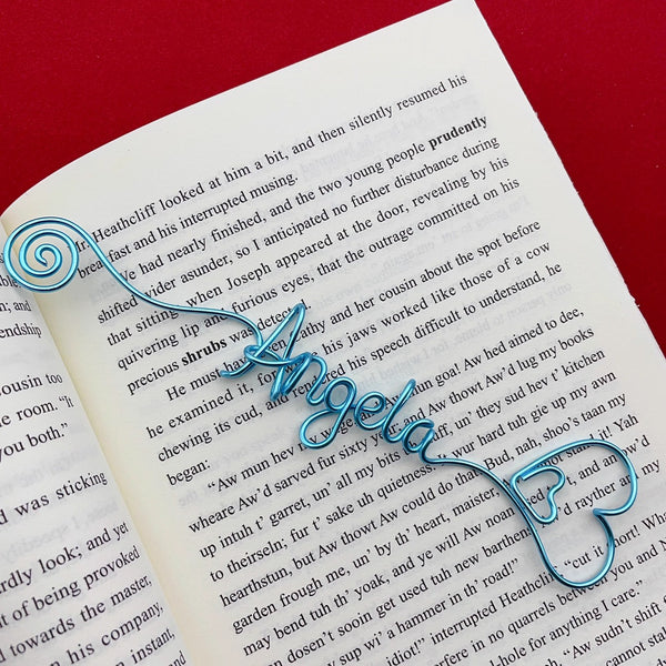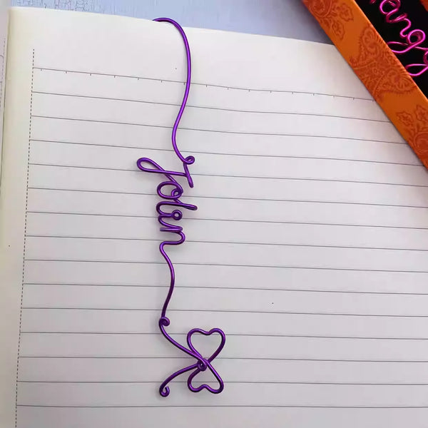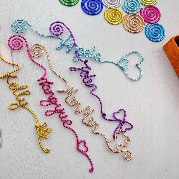 名前やイニシャルをワイヤーで丁寧にお作りする、名入れワイヤーブックマークです。