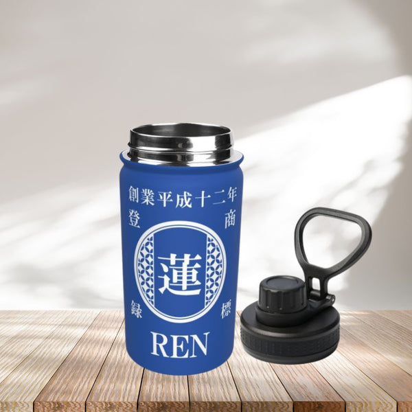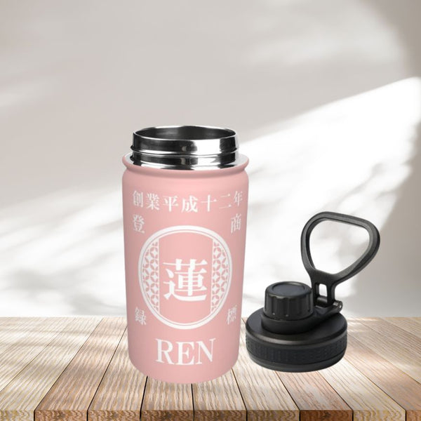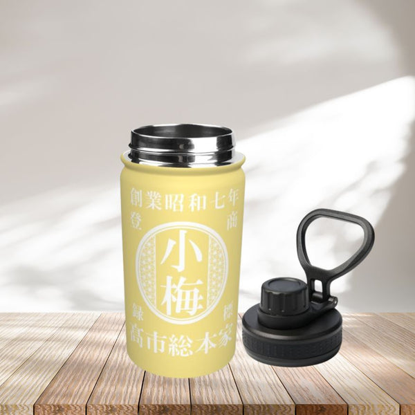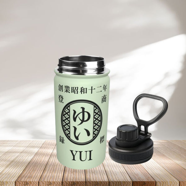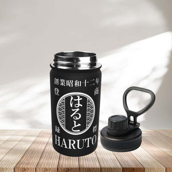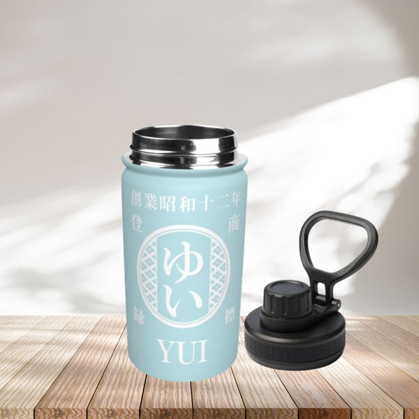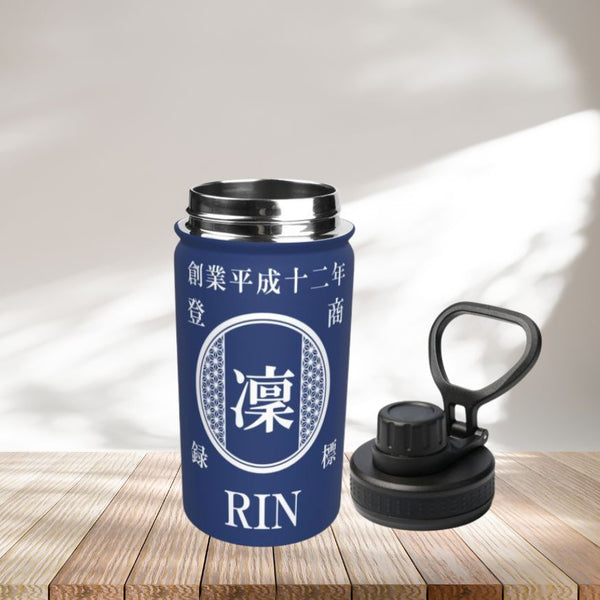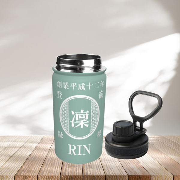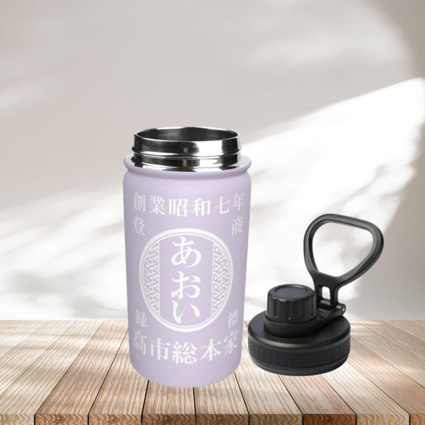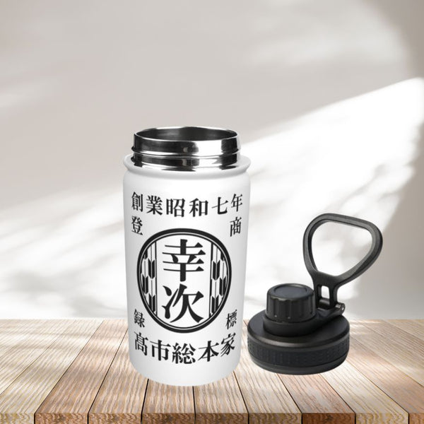 老舗の商店を思わせる「帆前掛け風デザイン」を施した、オーダーメイドの保温ボトルです。