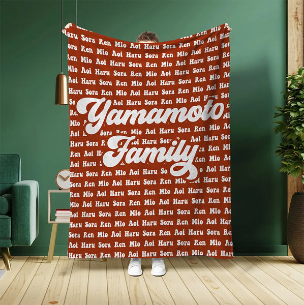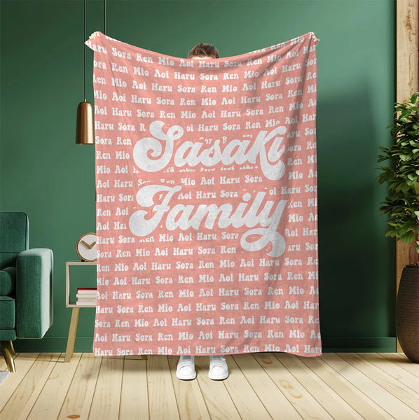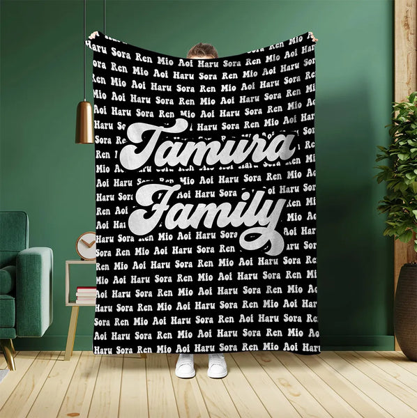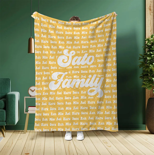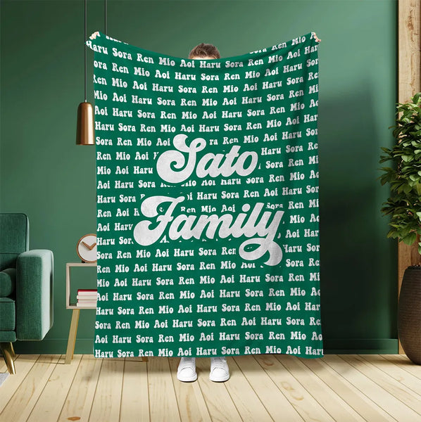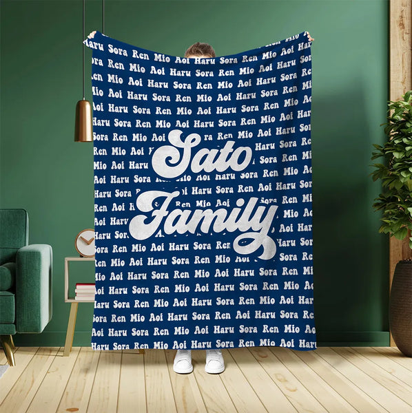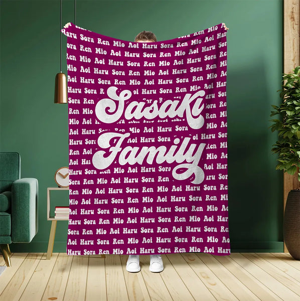 オーダーメイド 家族名前入りブランケット 膝掛け ひざ掛け  誕生日ギフト 敬老の日 米寿 還暦 母の日 父の日 じいじ ばーさん - 49下地色 - FAMILY