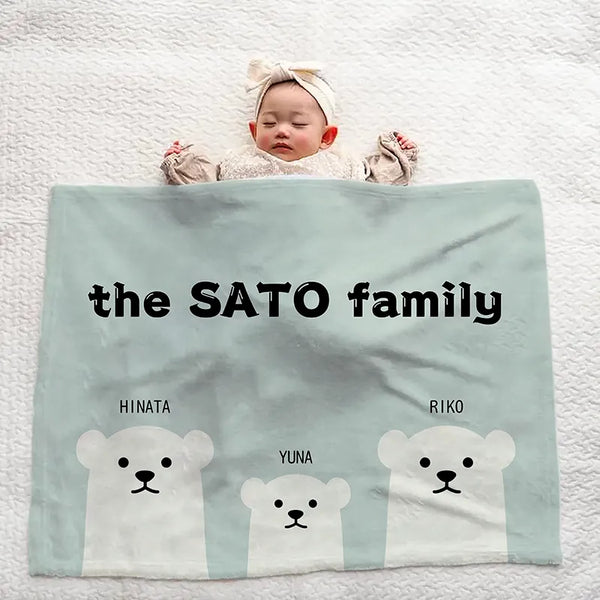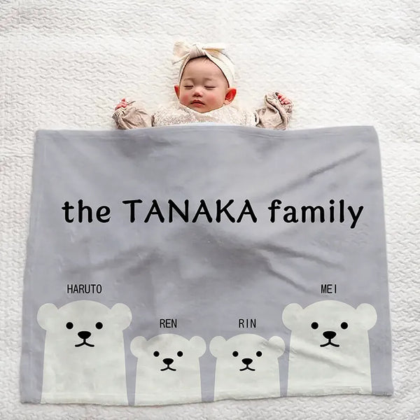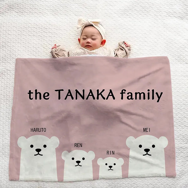 家族・子供 名前入りブランケット 膝掛け ひざ掛け|オーダーメイドで作る世界にひとつのギフト - クマ - 1/15