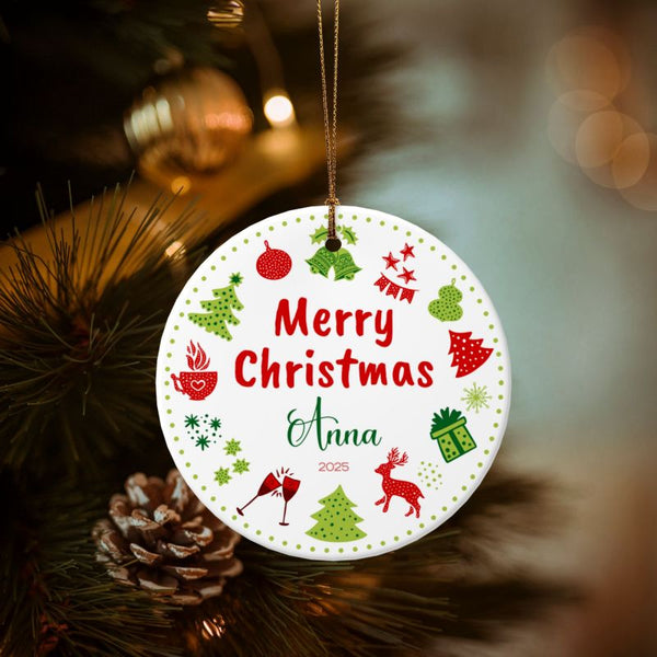 2025クリスマス限定!オーダーメイド クリスマスオーナメント|名前入り・陶器製|MERRY CHRISTMAS